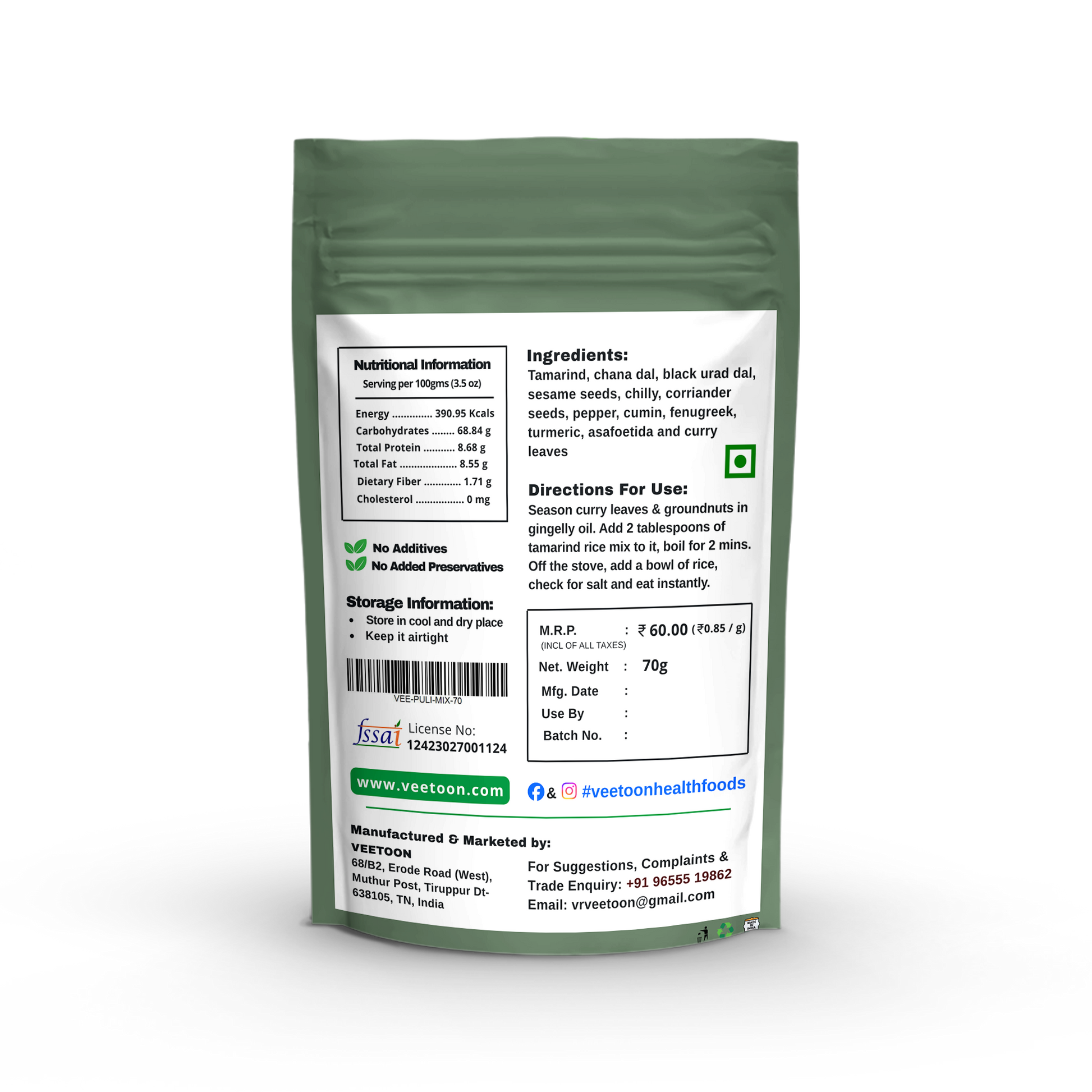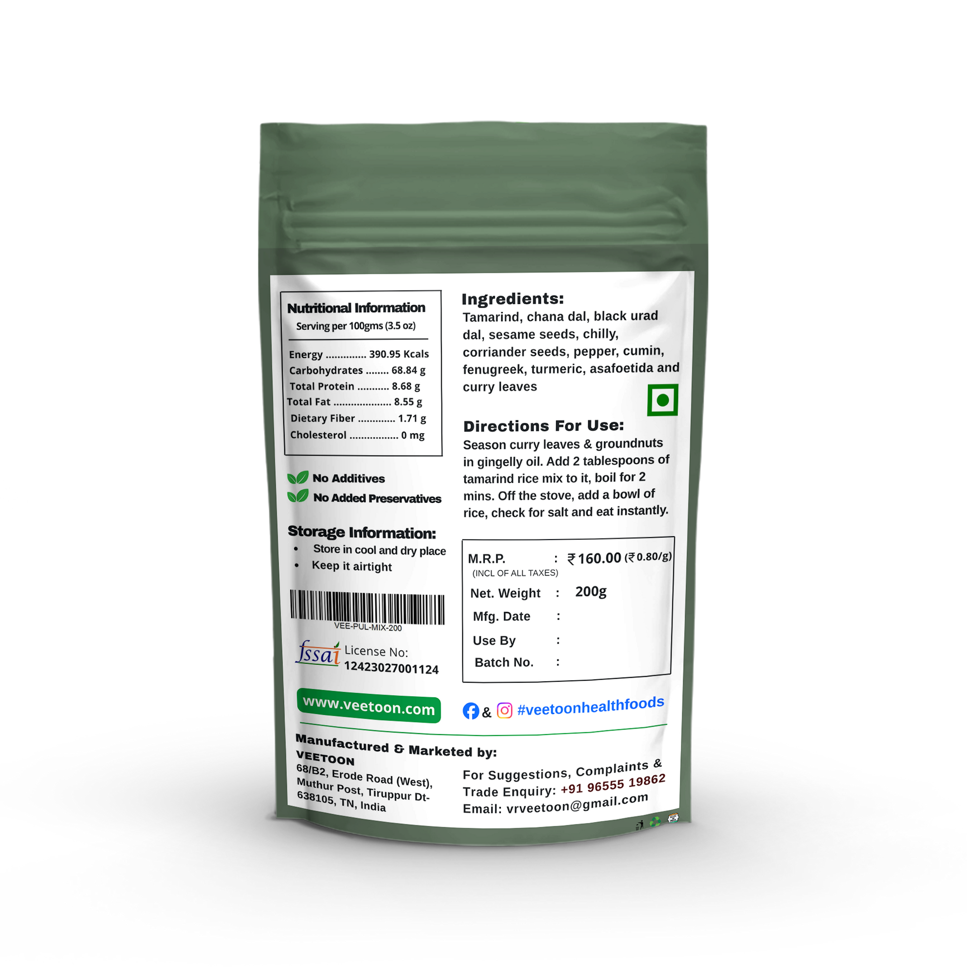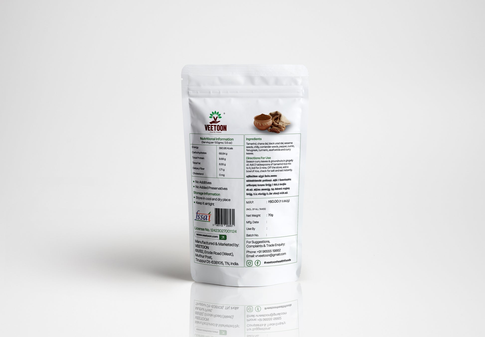 Relish the authentic tang and spice of South India with Veetoon’s Puliyodharai Mix. Made with pure tamarind, roasted dals, and hand-ground spices, it brings temple-style tamarind rice to your plate in minutes.